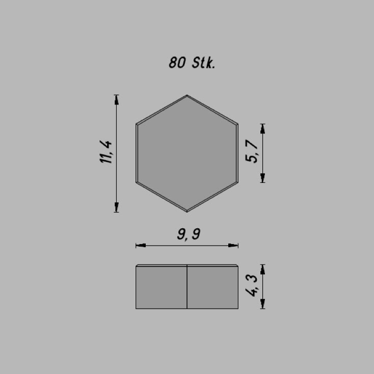 Unsere handgefertigte Sechskantplatten im Massstab 1:35 bestehen aus hochwertigem, gefärbtem Gips und sind den echten Platten detailgetreu nachgebildet.