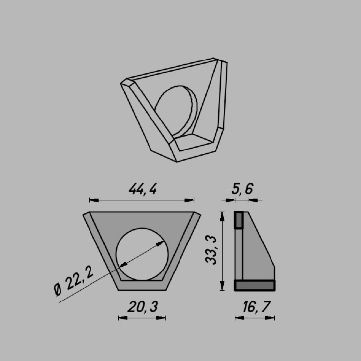 • Abmessungen: ∅22,2 x 44,4 x 33,3 mm