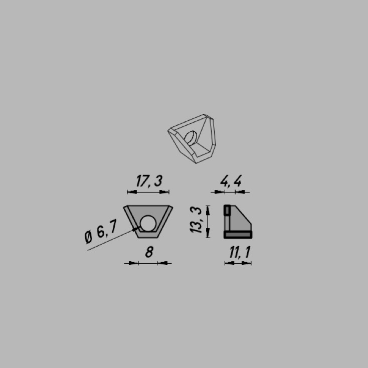 • Abmessungen: ∅6,7 x 17,3 x 13,3 mm