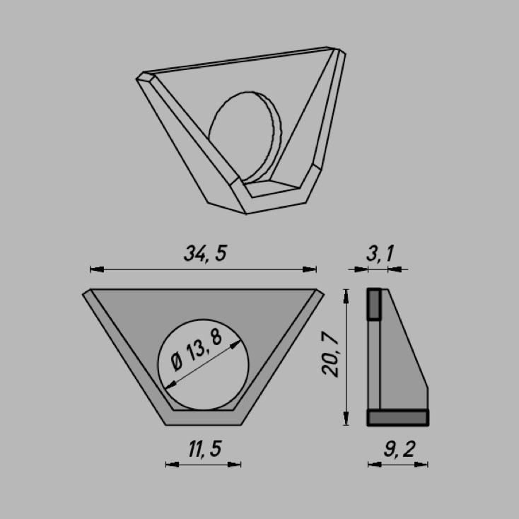 • Abmessungen: ∅13,8 x 34,5 x 20,7 mm