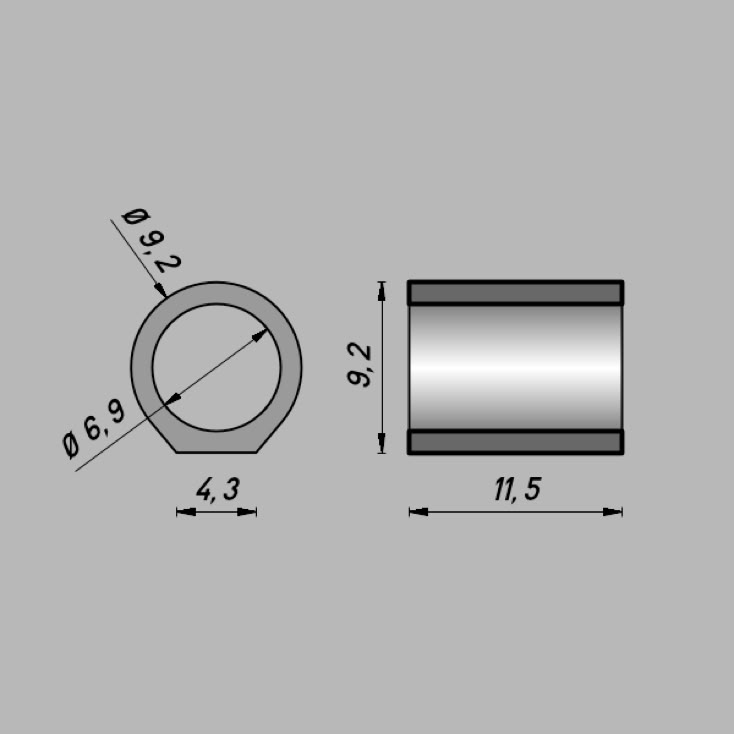 • Abmessungen: ∅6,9 x 11,5 x 1,1 mm