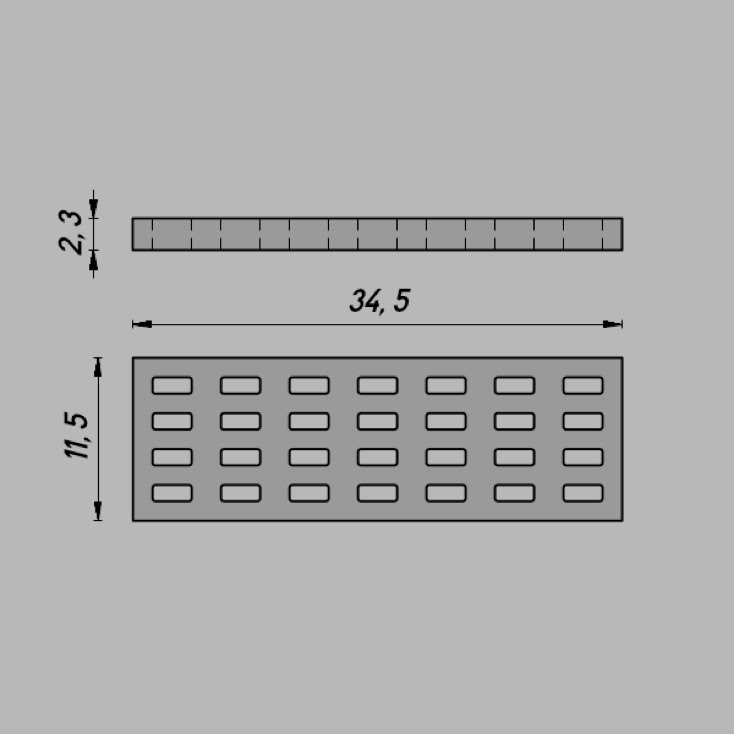 Abmessungen: 34,5 x 11,5 x 2,3 mm