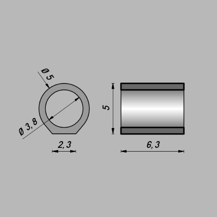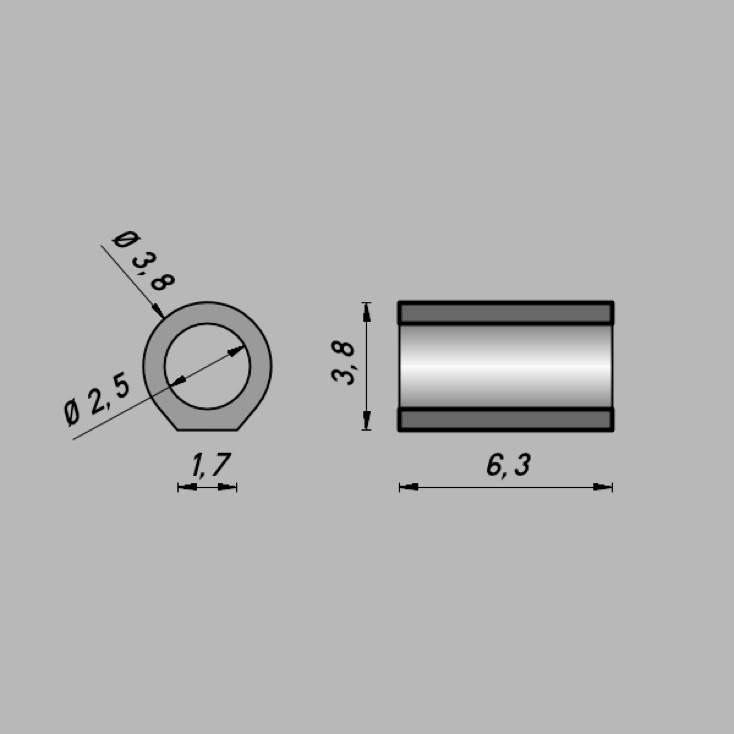 • Abmessungen: ∅2,5 x 6,3 x 0,6 mm