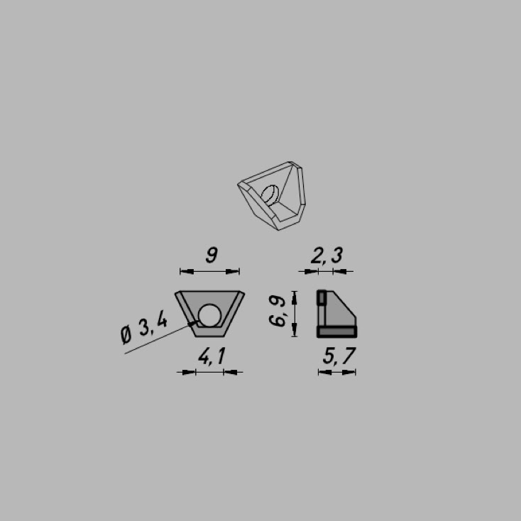 • Abmessungen: ∅3,4 x 9 x 6,9 mm