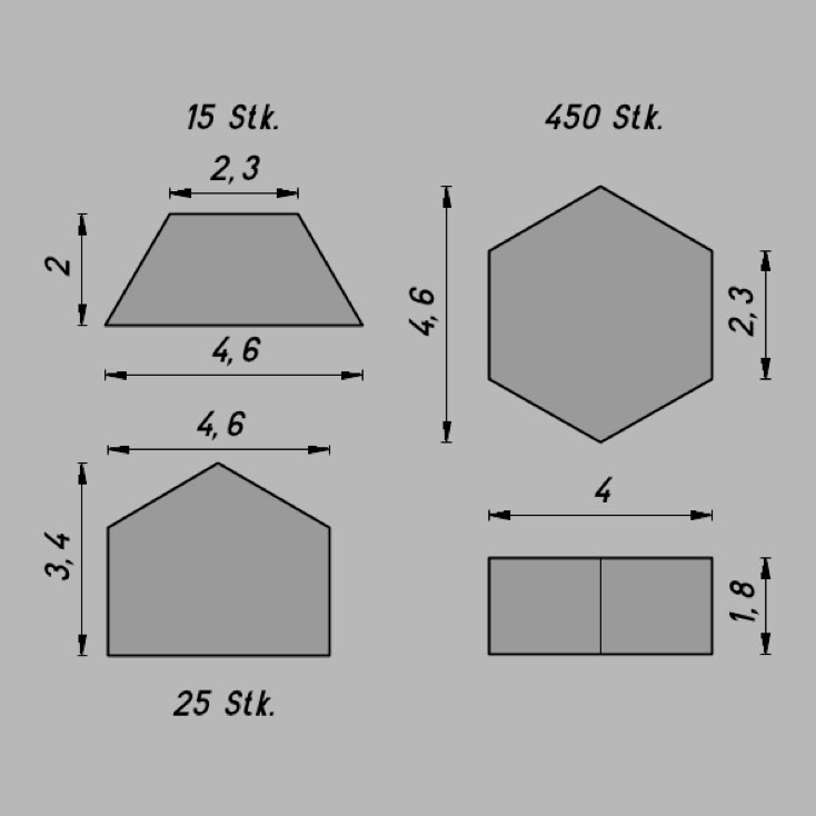 • Varianten: Standardplatten, Halbplatten, Kantenstücke