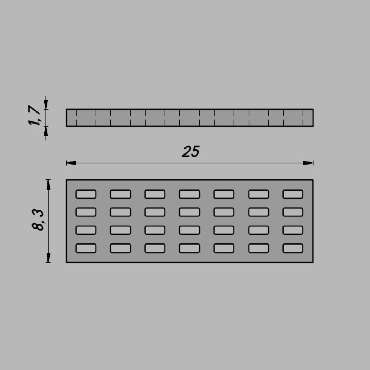Abmessungen: 25 x 8,3 x 1,7 mm
