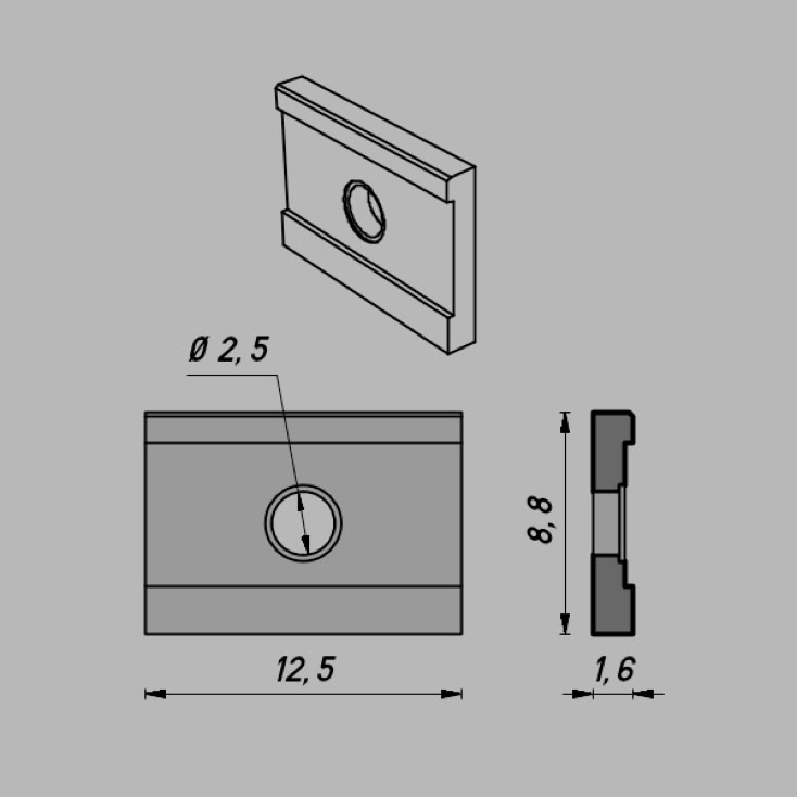 • Abmessungen: ∅2,5 x 12,5 x 8,8 mm
