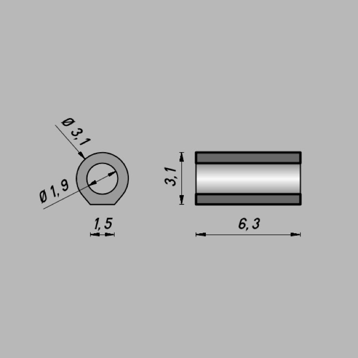 • Abmessungen: ∅3,1 x 6,3 x 0,6 mm