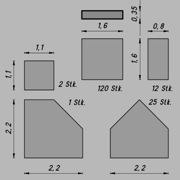 Standardplatten - 1,6 x 1,6 x 0,35 mm - 120 Stk.