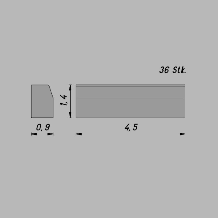 • Abmessungen: 4,5 x 1,4/0,9 x 0,9 mm